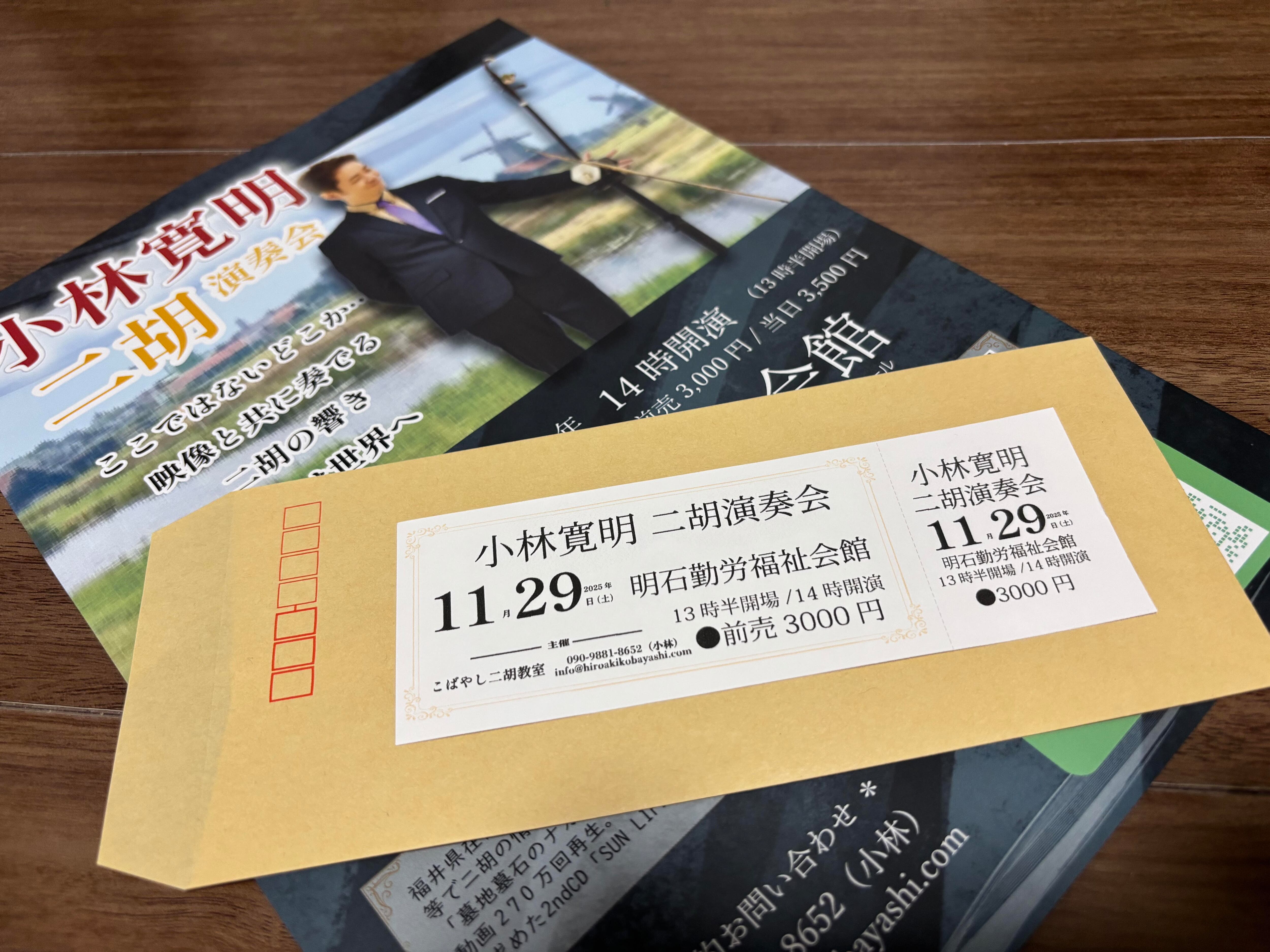 2025年11月29日小林寛明二胡演奏会in明石 チケット